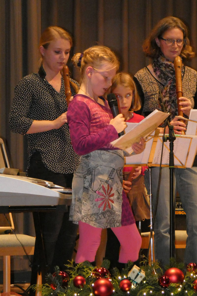 Auch der Nikolaus hatte sein Kommen angekündigt und wurde „Am Weihnachtsbaum die Lichter brennen“ begrüßt. Die Kinderaugen wurden immer größer, sie konnten es kaum er-warten, bis er zur Bühne kam. In Gedichtform ließ er das Vereinsjahr Revue passieren, lobte und dankte Schüler, Lehrer und ehrenamtliche Helfer für ihren großen Einsatz im vergange-nen Jahr. Nach dem gemeinsamen Lied „Stille Nacht, Heilige Nacht“ duften die Kinder ihre Nikolausgeschenke in Empfang nehmen. Auch die Saalkinder wurden mit einem kleinen Ge-schenk bedacht.